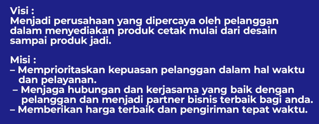 Dengan konsep 1 stop printing yang murah, cepat dan bagus, kami siap membantu mewujudkan keperluan promosi usaha anda, mulai dari design sampai produk cetak jadi.